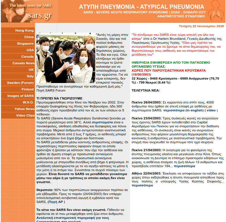 Ιστορικό του SARS από το αρχείο του ygeia2.gr και sars.gr 16/6/2003